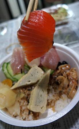 這是今日午餐外帶的生魚片丼飯 NT100