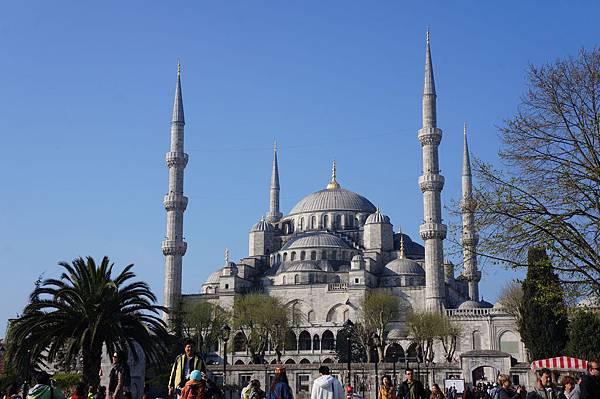照片裡是著名的藍色清真寺{蘇丹艾哈邁德清真寺}