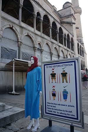 這兩張是說明進入清真寺必要的裝扮&鞋子一定要脫啦^^