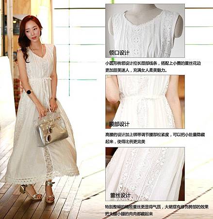 5.韓國鏤空鉤花刺繡無袖顯瘦蕾絲連衣裙